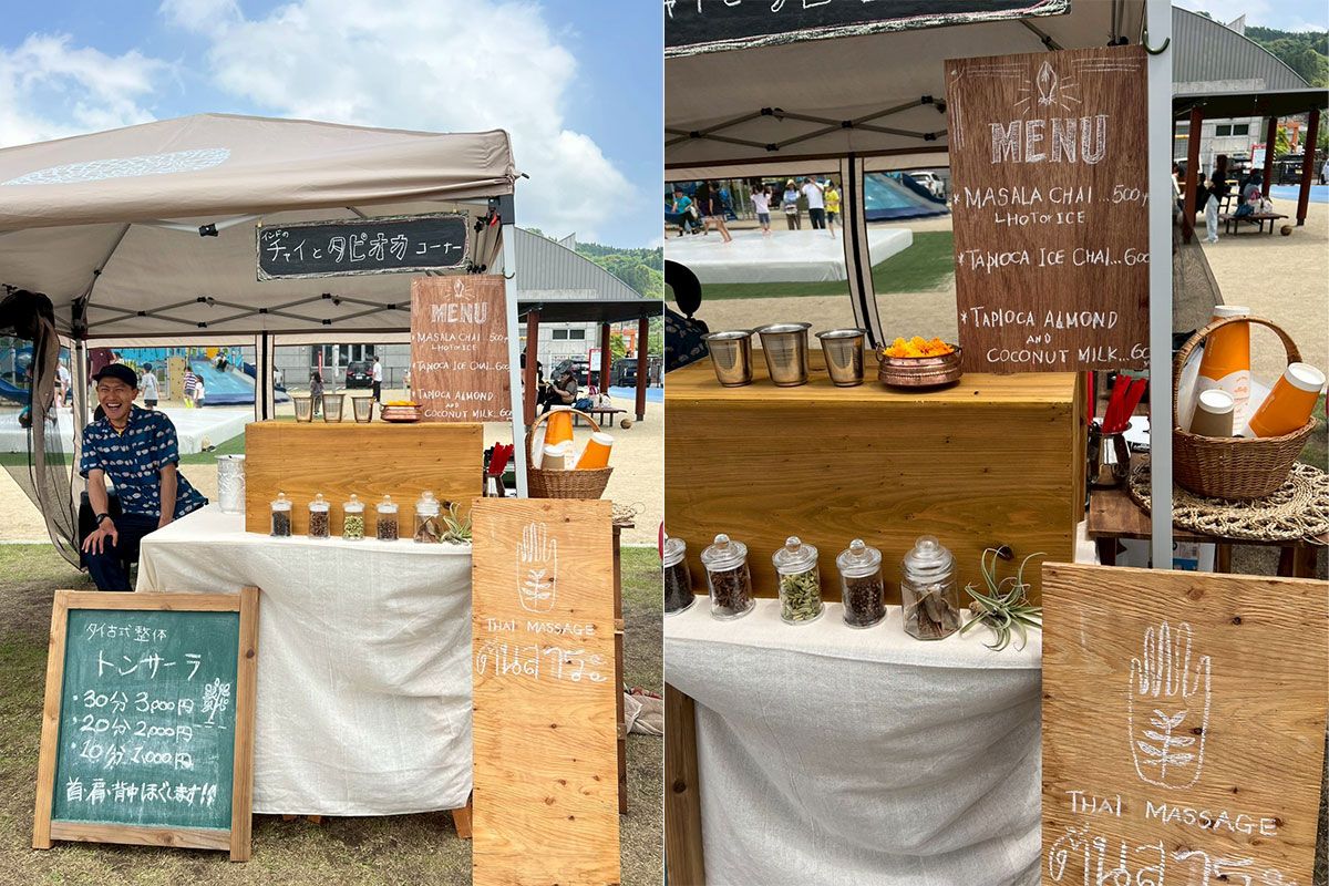 夫のヒデ君はタイマッサージ(トークセン)の技術を修得をしに定期的にタイに通っていて、宮崎ではイベントでマッサージやチャイスタンドの出店をしています。